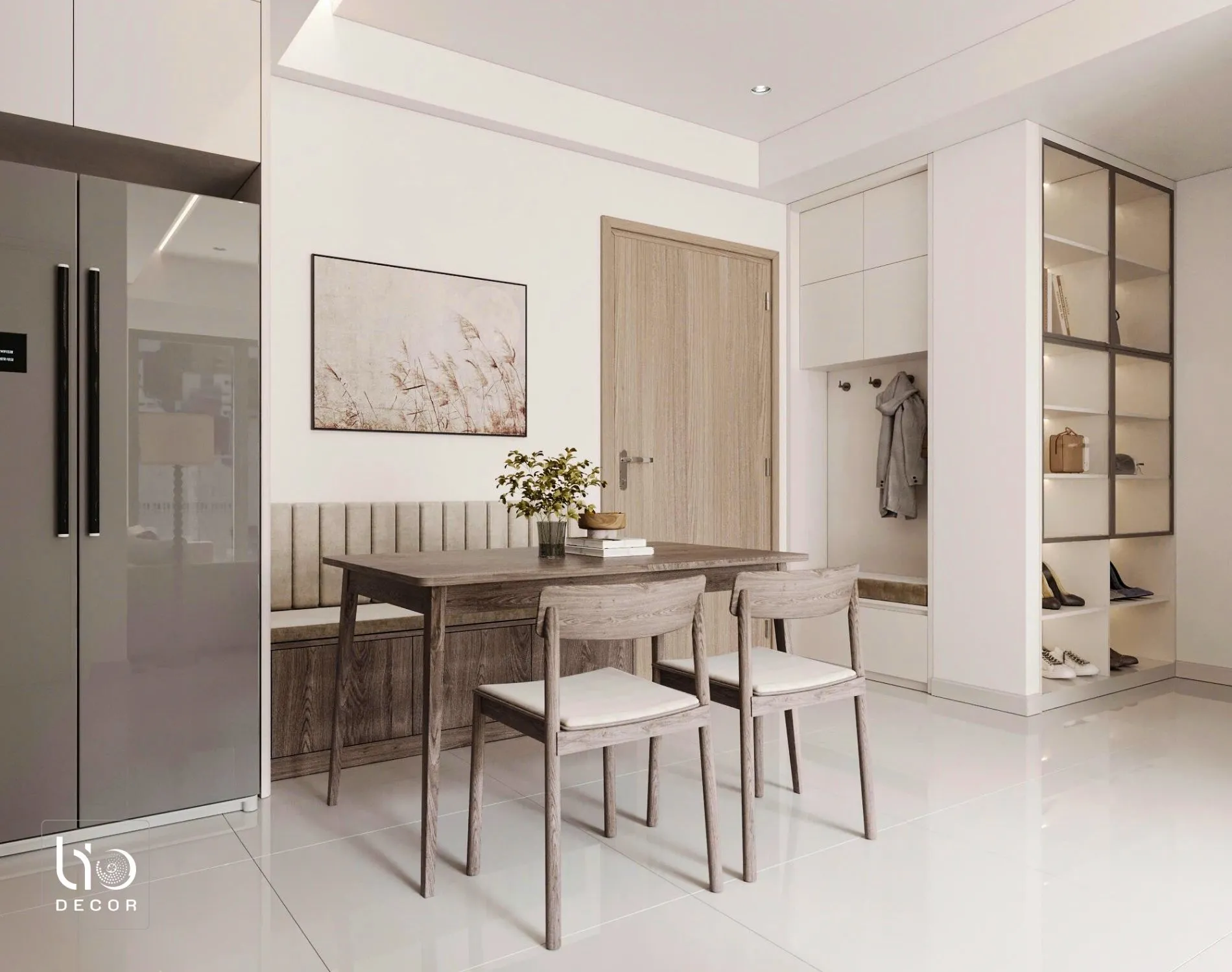• Chủ đề màu sắc: Trắng – xám – nâu gỗ